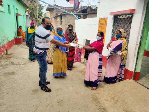 आंगनबाड़ी सेविका द्वारा घर घर जाकर दूध का किया जा रहा वितरण