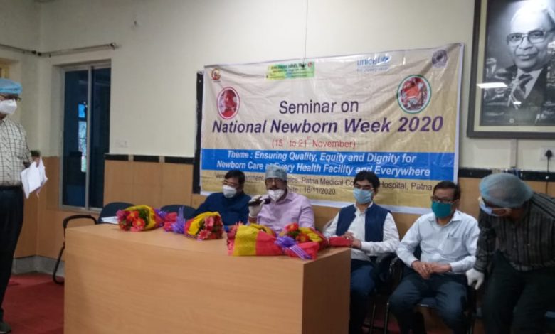 सर्वप्रथम डॉ एके जायसवाल, विभागाध्यक्ष, शिशु रोग, पटना मेडिकल कॉलेज एवं अस्पताल ने बैठक में आये हुए सभी अतिथियों का स्वागत किया। उन्होंने कोविड-19 वैश्विक महामारी काल में शिशुओं की देखभाल के संबंध चर्चा की। उन्होनें बताया कि एक वर्ष में होने वाले कुल शिशुओं की मृत्यु में तीन चैथाई मृत्यु केवल नवजातों में होता है। अगर नवजात मृत्यु में कमी लायी जाए तो शिशु मृत्यु दर में स्वतः कमी आ जायेगी। सेमिनार में यूनिसेफ बिहार, पटना के स्वास्थ्य विशेषज्ञ डॉ. सैय्यद हुब्बै अली ने विस्तारपूर्वक इस दिवस के महत्व एवं आवश्यकता को बताया। उन्होनें बताया कि ‘‘राष्ट्रीय नवजात सप्ताह-2020’’ का विषय है – हर स्वास्थ्य संस्थान पर हर नवजात की देखभाल में गुणवत्ता, समानता एवं गरिमा सुनिश्चित करते हुए सुविधा प्रदान करना । इसी दिशा में आज का यह सेमिनार आयोजित किया गया ।