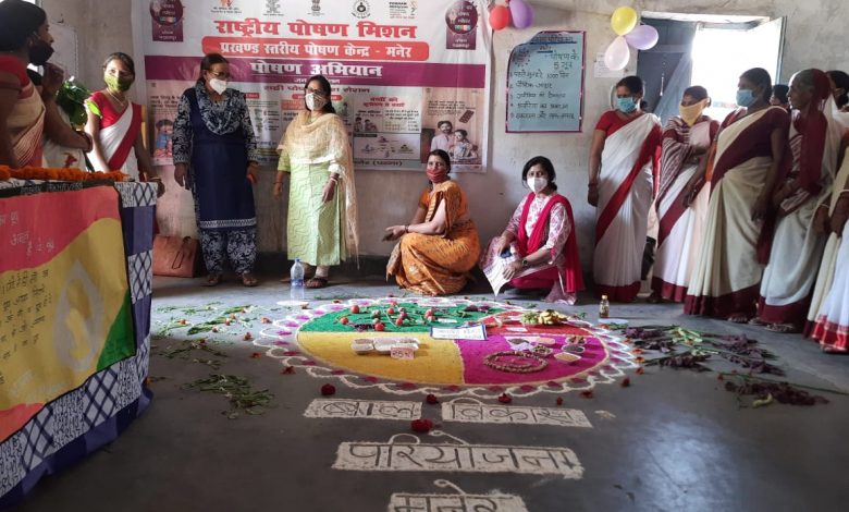 होली के पकवानों की तैयारी के बीच पोषण की खुश्बू भी देखने को मिल रही हैं. शनिवार को जिले के मनेर प्रखंड स्थित बाल विकास परियोजना के द्वारा पोषण पर लोगों को जागरूक करने के लिए विभिन्न कार्यक्रमों का आयोजन किया गया, जिसमें पोषण पखवाड़ा के तहत एक तरफ़ आंगनवाड़ी कार्यकर्ताओं ने रैली निकाली. वहीं पोषण पर अलख जगाने के लिए जागरूकता रथ भी रवाना किया। साथ ही आंगनबाड़ी कार्यकर्ताओं द्वारा “आपकी सेहत, आपकी थाली” थीम पर बनाई गयी रंगोली भी आकर्षण के केंद्र रहे. रंगोली के माध्यम से लोगों को बेहतर पोषण की जरुरत पर संदेश दिया गया.