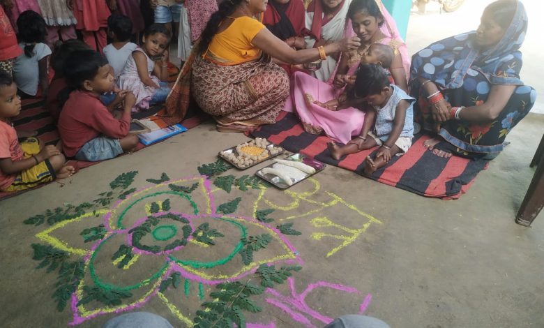 ऑगनबाड़ी केंद्रों पर अन्नप्राशन के साथ वैक्सीनेशन शिविर का आयोजन -वैक्सीन से वंचित लोगों को किया गया टीकाकृत