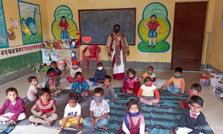 आंगनबाड़ी केंद्रों में कोरोना गाइडलाइन का रखा जा रहा ख्याल