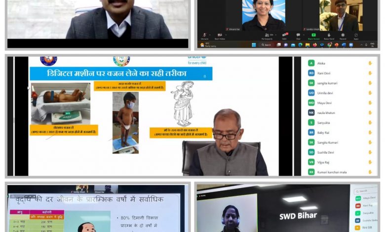 बांका / 3 जनवरी: बाल कुपोषण पर लगाम लगाने के लिए आईसीडीएस द्वारा कई स्तर पर कार्य किए जा रहे हैं. जिसमें आंगनवाड़ी केंद्रों पर नियमित रूप से बच्चों की वृद्धि निगरानी एक महत्वपूर्ण सेवा है. इस संबंध में मंगलवार को वर्चुअल माध्यम से आईसीडीएस के सभी जिला कार्यक्रम पदाधिकारी, बाल विकास परियोजना पदाधिकारी, महिला पर्येवेक्षिका एवं आंगनवाड़ी कार्यकर्ताओं का उन्मुखीकरण किया गया.