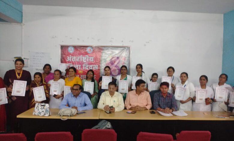 अंतराष्ट्रीय महिला दिवस को ले स्वास्थ्य क्षेत्र में बेहतर कार्य करने वाले स्वास्थ्यकर्मी सम्मानित
