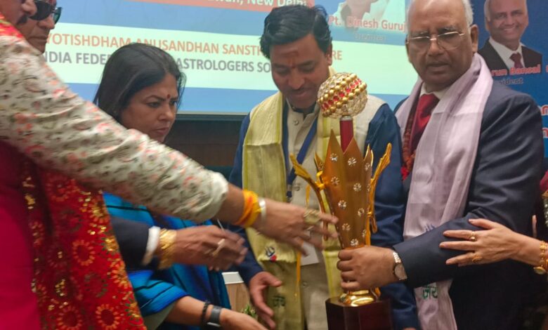 बाबा महाकाल के आशीर्वाद से उज्जैन निवासी पंडित रमेश शर्मा जो की विगत 26 वर्षों से निरंतर देश विदेश में ज्योतिष, रत्न, कर्मकांड, तथा वास्तु शास्त्र में कार्यरत है अनेक उपलब्धि हासिल करने पर मां शारदा ज्योतिष अनुसंधान के संस्थापक दिनेश गुरूजी द्वारा विज्ञान भवन दिल्ली में आयोजित प्रथम ज्योतिष, वास्तु , कर्मकाण्ड सम्मेलन में सम्पूर्ण भारत सहित विदेशों से भी पधारे विद्वान अतिथियो की उपस्थिति में सम्मानित किया गया| कार्यक्रम की शुरुवात सर्वप्रथम दीप प्रज्ज्वलित किया गया इस अवसर पर अतिथियों ने अपना अपना उदबोधन अलग अलग विषयों पर दिया तथा ग्रहों, नक्षत्रों, टैरो कार्ड,वास्तु हस्तरेखा आदि महत्त्व पूर्ण विषयों पर गहन चिंतन और अध्ययन किया गया |इस आयोजन में प्रसिद्ध में विशेष अतिथि के रूप में पधारी केंद्रीय गृहराज्य मंत्री श्रीमति मीनाक्षी लेखी ने अपने संबोधन में कहा की आप विद्वानों से ही सनातन को मजबूती प्राप्त होती है और समय समय पर इसमें गहन चिंतन की बहुत आवश्यकता है कोई भी व्यक्ति जब परेशानी से सामना करता है या अचानक कोई संकट पीड़ा आ जाए तो वो विद्वान ज्योतिषी के पास आता है और मार्ग दर्शन चाहता है और उस समय आपके द्वारा बताए गए उपाय पूजा, अनुष्ठान, जाप, आदि ही उसके लिए रामबाण साबित होते हैं और लोगो का विश्वाश दिन प्रतिदिन ज्योतिष, की बढ़ता जा रहा है जो की बहुत अच्छी बात है । उज्जैन निवासी पंडित रमेश शर्मा ने बताया की.