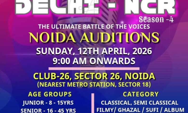 डीएमएस आरोही म्यूजिकल सोसाइटी (रजि.) नईदिल्ली द्वारा आयोजित वॉइस ऑफ दिल्ली-एनसीआर सीजन-4 की तैयारियां जोर-शोर से चल रही हैं। इसी क्रम में प्रतिभागियों के चयन के लिए 12 अप्रैल 2026 को नोएडा में ऑडिशन आयोजित किए जाएंगे। इस प्रतिभा खोज कार्यक्रम में दिल्ली-एनसीआर क्षेत्र के गायक अपनी गायन प्रतिभा का प्रदर्शन करेंगे।