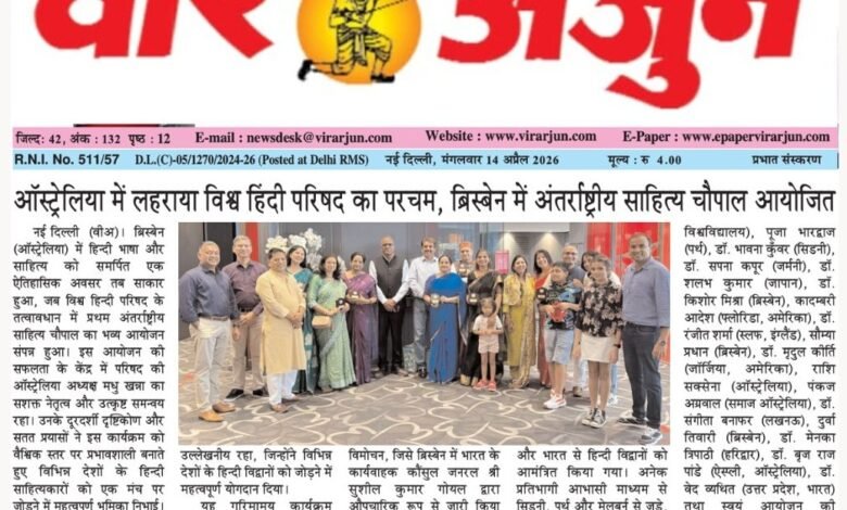 मीडिया ‘वीर अर्जुन’ की सुर्खियों में—ऑस्ट्रेलिया में विश्व हिंदी परिषद का परचम, ब्रिस्बेन में अंतरराष्ट्रीय साहित्य चौपाल